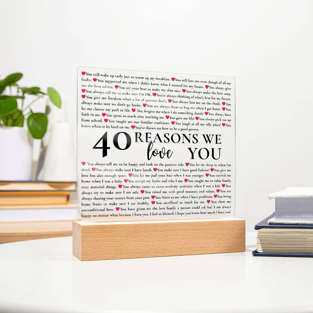 40 Reasons We Love You Personalized Acrylic Plaque – Custom Gift for Mom, Dad, Grandma, Birthday, Mother’s Day, Appreciation Keepsake