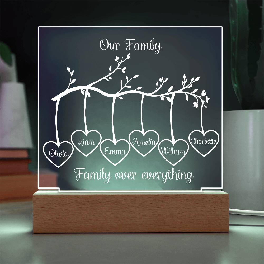 Personalized Family Tree Acrylic Plaque with Wooden Stand – Custom Names Gift, Home Decor, Family Keepsake, Anniversary Gift