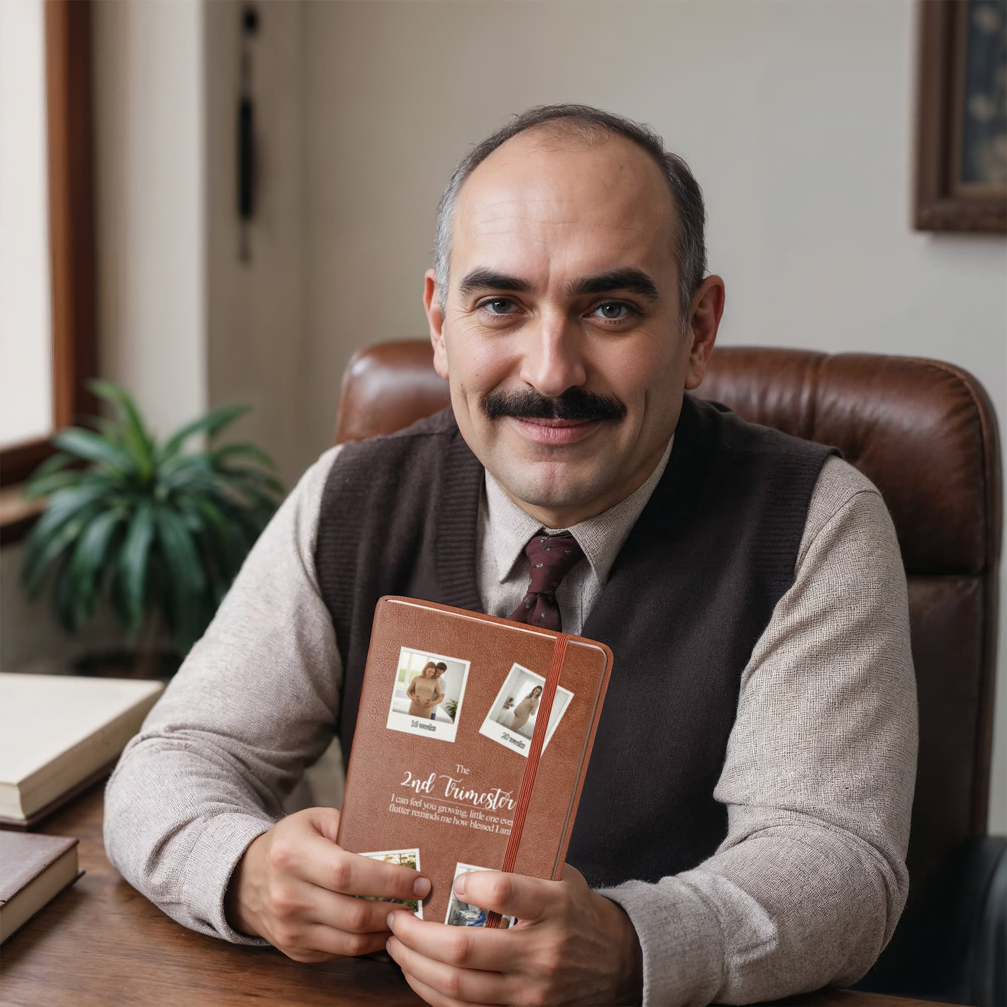 A personalized 2nd trimester journal printed on vegan leather and designed to celebrate your growing bump, your baby’s tiny flutters, and the unforgettable joy of mid-pregnancy—customized with your photos, name, date, and message.